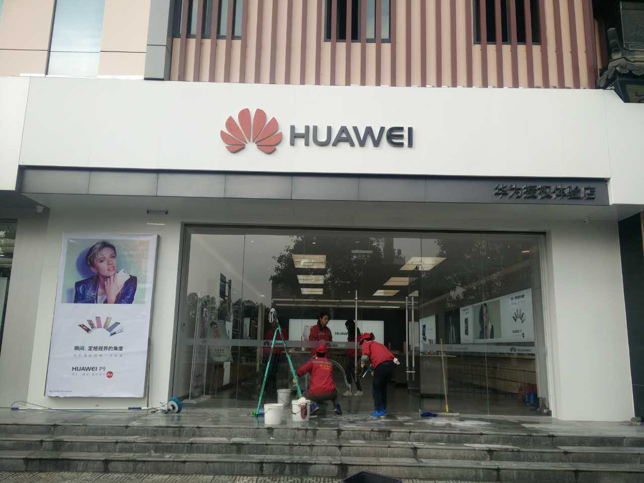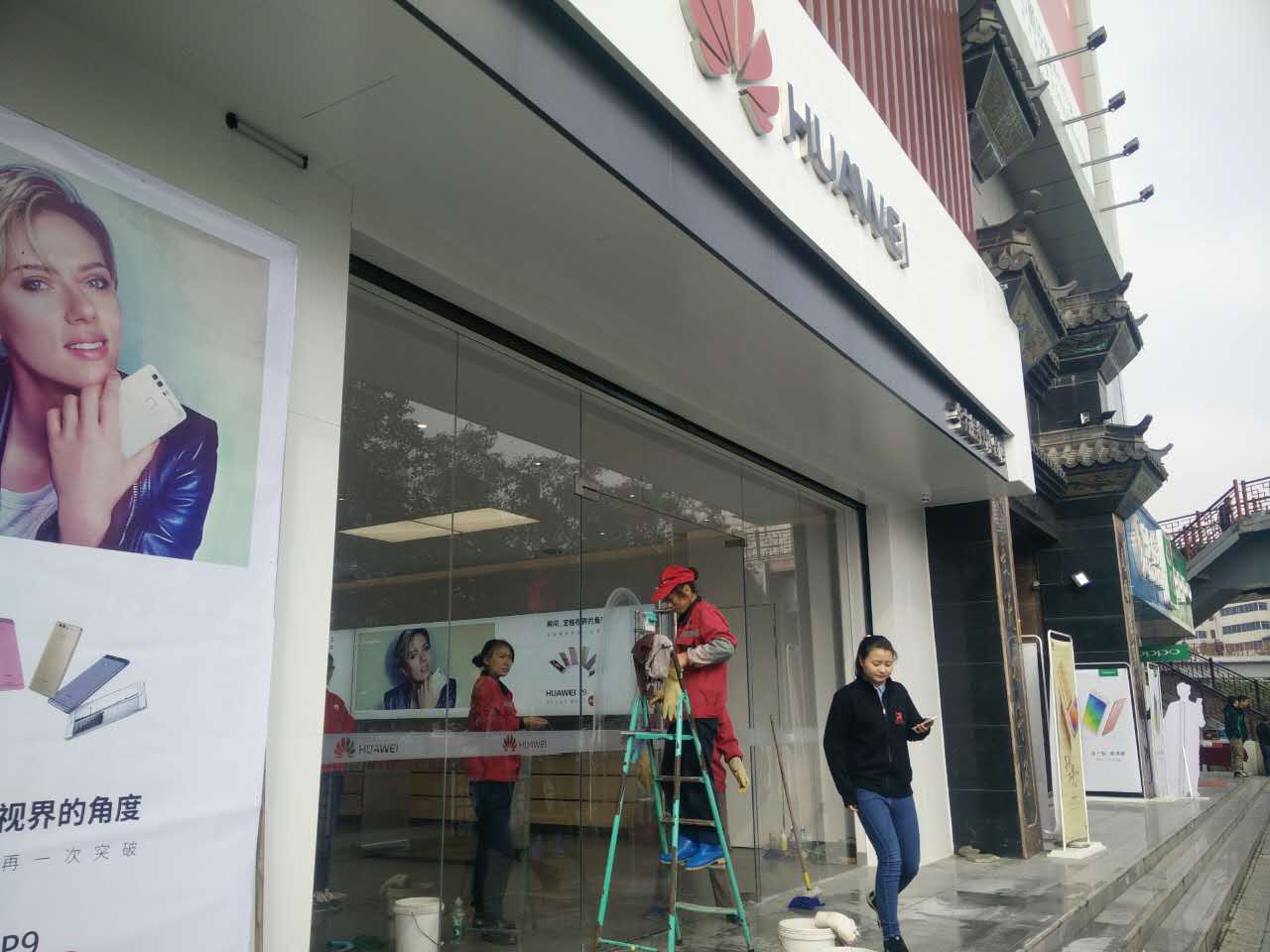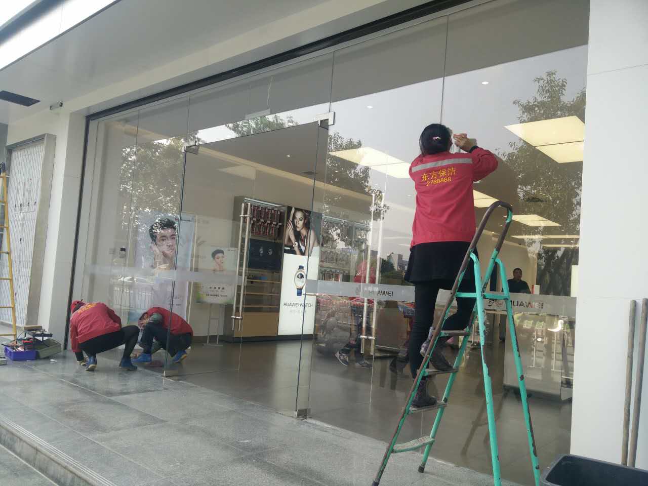 【東方家政】漢臺區(qū)中心廣場手機專賣店門頭清洗